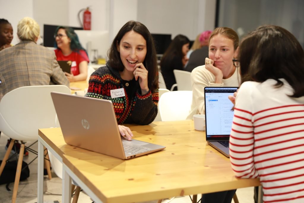 Ese verano, Victoria empezó a asistir a meetups para codificadores en Barcelona. Al principio de su viaje, no encontraba su sitio en los eventos de codificación. Como estudiante de bootcamp y estudiante independiente, los eventos organizados para codificadores con cargos superiores eran demasiado técnicos. Además, los asistentes le respondían con "cara de pena" cuando les explicaba que era nueva en el sector. Aun así, no perdió la fe. "Algún día entenderé [los conceptos técnicos], pero si me rindo, entonces nunca lo entenderé".